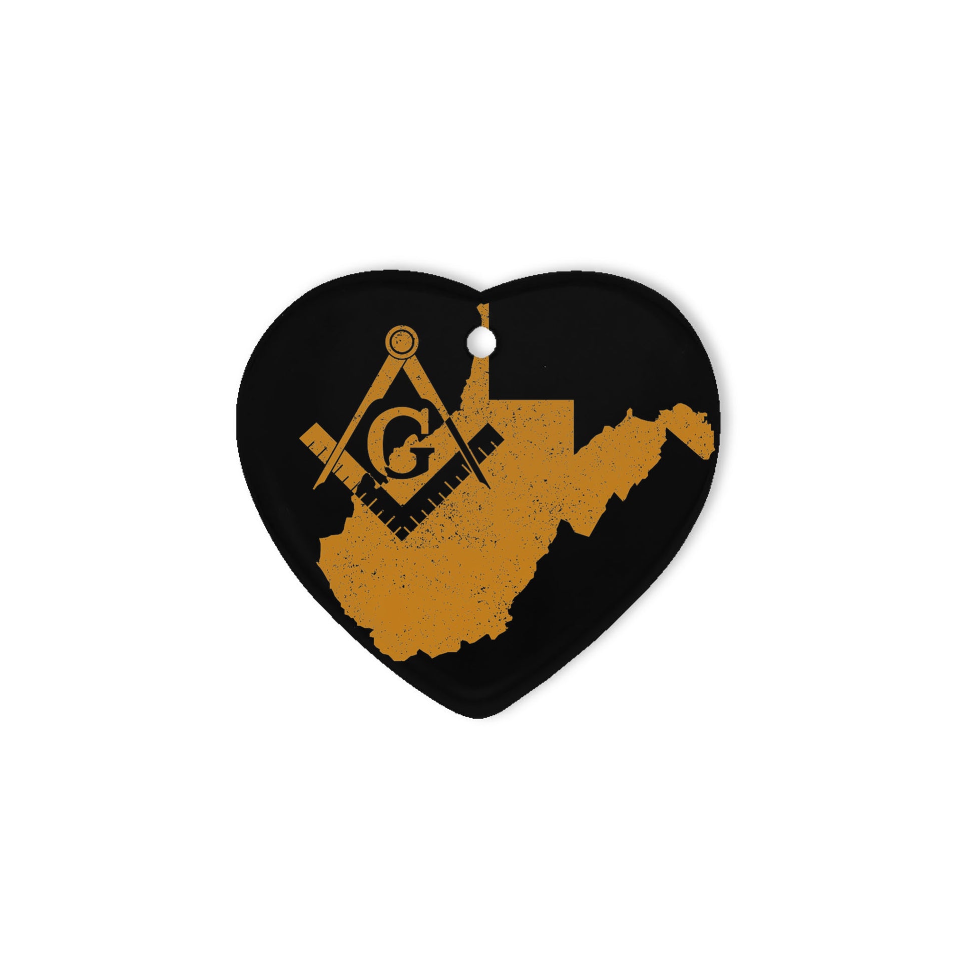 West Virginia square & compass freemason symbol state map - Heart Ceramic Ornament (2 sided)