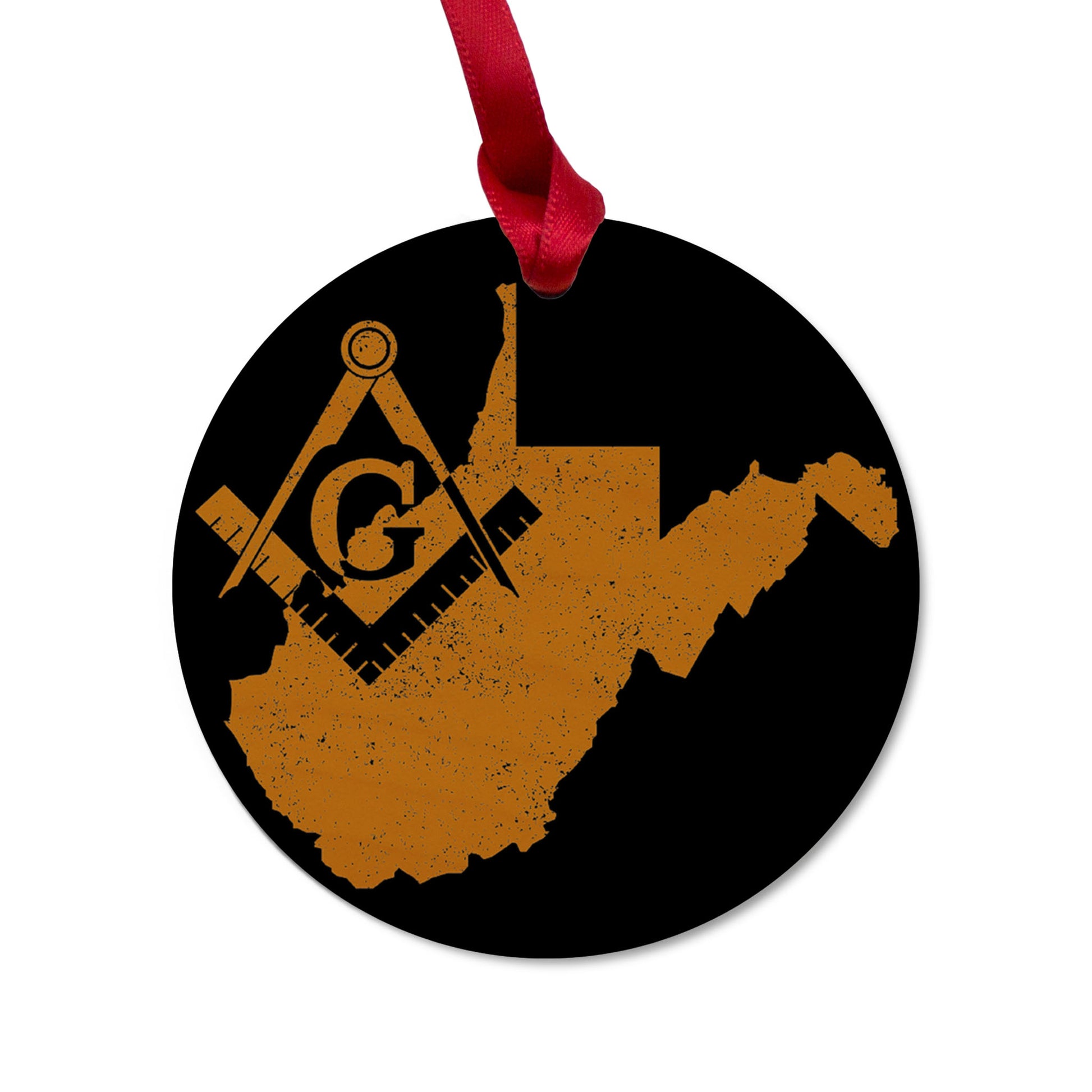 West Virginia square & compass freemason symbol state map - Round Wooden Maple Ornament