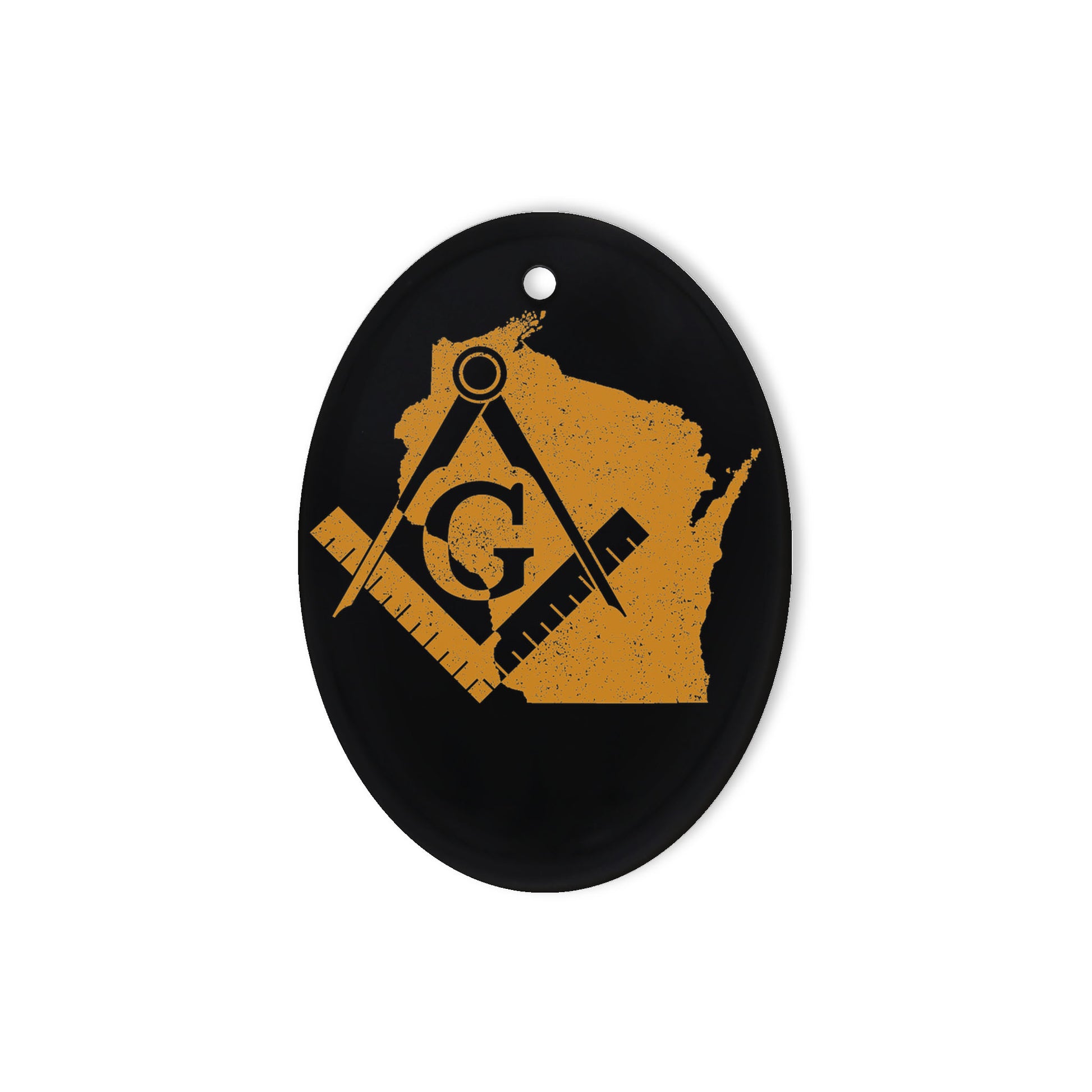 Wisconsin square & compass freemason symbol state map - Oval Ceramic Ornament