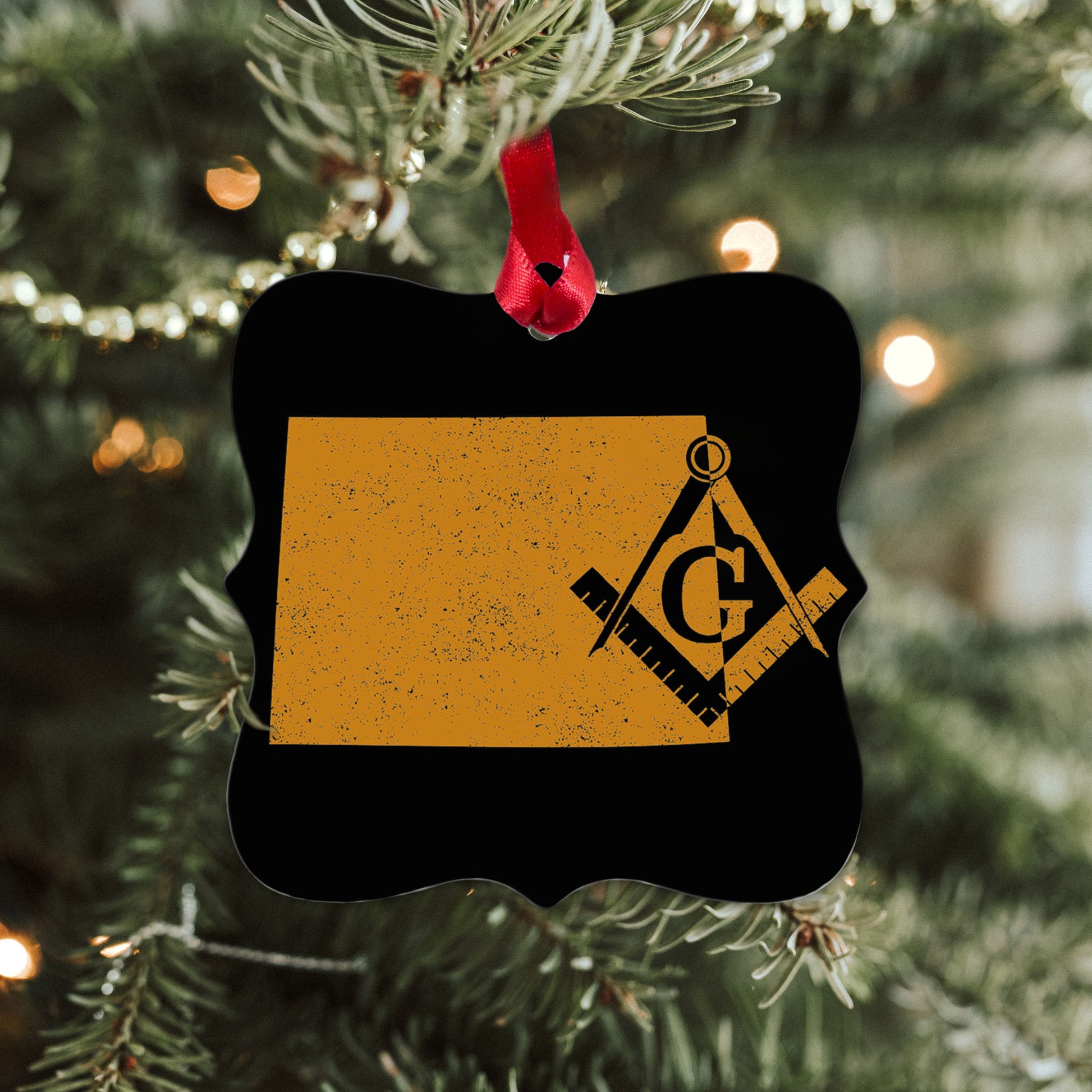 Wyoming square & compass freemason symbol state map - Square Aluminum Ornament